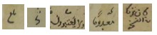 وكما التزم علامات الإعجام التزم علامات الإهمال على أغلبها من حروف الحاء والراء والطاء والدال والسين والعين، وعند انتهاء الكلام وضع حرف الهاء مجردًا «هـ» دلالة على النهاية.