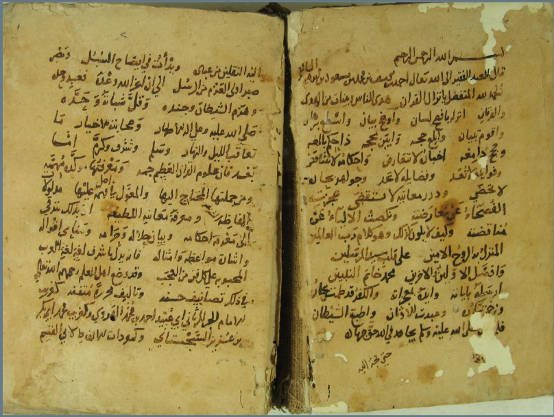 وقد بدأت هذه النسخة بتجليد بُنِّي أثَّرت فيه العوامل الزمنية من رطوبة وتمزق من أطرافه ولسانه، ثم بتصفُّح أوراقها ترى أن الرطوبة والبُقَع والبلل قد أثَّرت على أوراقها دون حِبرها، وأصابها التمزق والتفكك في مواضع أخرى عليها، ولقد أظهرت الأَرَضَةُ عليها تأثيرًا بالغًا، فلم تَخْلُ ورقةٌ من أوراقها لم تخترقها الأَرَضَةُ، فكان لها بعض الضرر على النسخة، ولكن بالمجمل فإن النسخة قد نجت من الهلكة، وحافظت على هيكلها بعيدًا عن التلف، وإنْ أصابه ما ذكرنا (صورة 2).