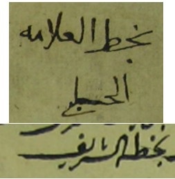 هذه النسخة لا تحتاج للبحث عن ناسخ لها، أو إعمال الوسائل المُعِيْنة على تقدير زمنٍ معيَّنٍ لنسخها؛ فقد اتضح من أولها أنها كُتبت من غير واسطة بين الناطق والكاتب؛ لأن صاحب العمل قد كَتب هذه النسخة بيده مباشرة، وقد ثبت لنا ذلك بما كَتب الشيخ وليُّ الدين جار الله صاحب المكتبة بخطه على أولها -وهو من أهل التحقيق والتدقيق- أنها بيدِ المؤلِّف، وقد كَتب بخط مختلف: «بخط العلَّامة الحلبي» (صورة 3)؛ وهي إِذْ كُتبت بيمينه فهي من مكتوبات القرن الثامن، وتحديدًا قبل 756هـ زمن وفاته.