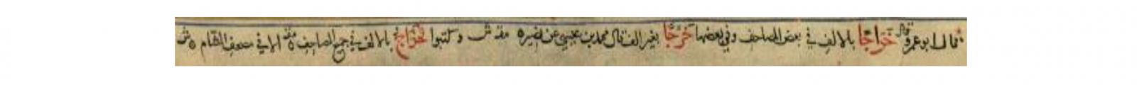 [1] قال في المقنع: «{أم تسئلهم خراجًا} بألِف، وفي بعضها {خرجًا} بغير ألِف، وكتبوا {فخراج ربك} في جميع المصاحف بالألِف». ينظر: المقنع في رسم مصاحف الأمصار، أبو عمرو الداني، مكتبة الكليات الأزهرية، القاهرة، (1/100).