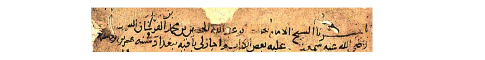 «أخبرنا الشيخ الإمام الحافظ أبو عبد الله الحسين بن محمد بن عليّ الفرخان السمناني -رضي الله عنه- سمعتُ عليه بعض الكتاب وأجاز لي باقيهِ ببغداد سنة عشرين وخمسمائة».