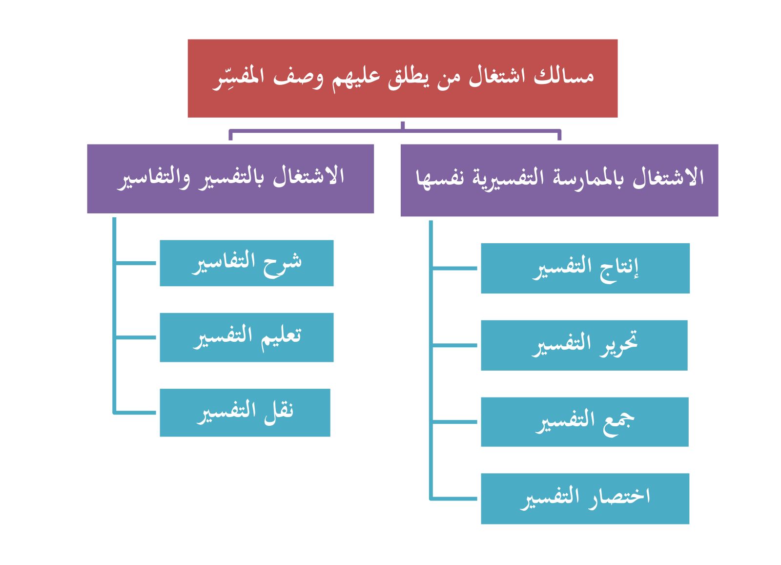 والرسم الآتي يبين لنا مسالك اشتغال مَنْ يُطْلق عليهم وصف المفسِّر: