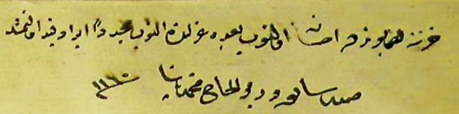 ولقد انتقلت هذه النُّسخة الشَّريفة بين أيدي أصحاب الشَّرف والرُّتب العليَّة، فأُهديت بعد مَشْقِهَا إلى الخزانة السُّلطانية لحضرة الباب العالي السُّلطان مراد خان قبل ختم الألف بتسع سنين.