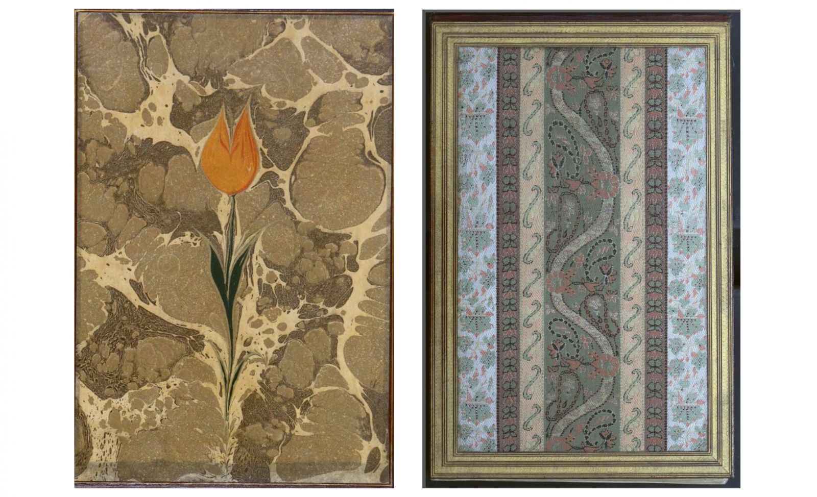 جُلِّدت النسخة بتجليدٍ من الجِلْد الملوَّن باللون البُنِّي، محفوف بإطار ذهبي من جوانبه وكعبه، ومرسوم عليه أشكال مموَّهة بالنبات متداخلة فيما بينها يظهر منها ألوان مختلفة كالأحمر والذهب والخُضرة، ثم على بطانته لوحتان من القماش يحيط بهما إطارٌ من الذهب ذو ثلاث طبقات، مزخرفتان بأشكال بديعة من النبات الذي توزّعَت صوره على شكل أرضية فاتحة اللون عليها أوراق خضراء، وفي منتصفها مزركشات ملونة بالخُضرة والحُمرة والذهب بأشكال منحنية تطوِّقها الأزهار والعروق النباتية.