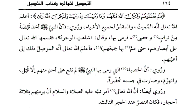 ومن النصوص التي وقع في توثيقها إشكال بسبب عدم تحرير موضعها بدقّة قول ابن عطية: «ويحتمل أن يريد: وما رميت الرعب في قلوبهم إِذْ رميت حصياتك، ولكن الله رماه، وهذا أيضًا منصوص في المهدوي وغيره»[23].