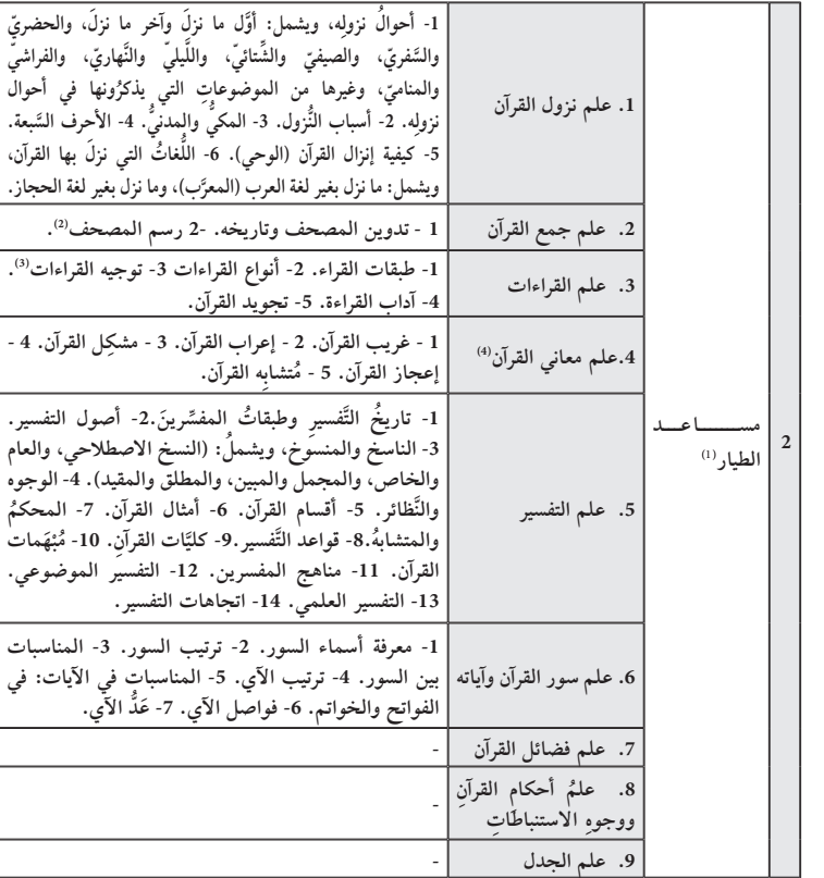 - مساعد الطيار: «جملة من أنواع المعلومات المضبوطة ضبطًا خاصًّا، المتعلقة بالقرآن الكريم من حيث نزوله وجمعه وقراءاته ومكيه ومدنيه وأسباب نزوله، وما إلى ذلك»[12].
