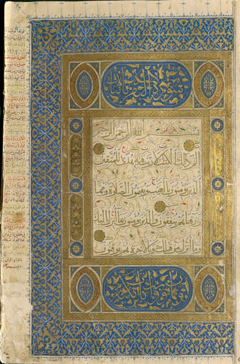 وجه الورقة الثانية من مصحف الأشرف قايتباي المُوقف على المدرسة الأشرفية بالمدينة النبوية